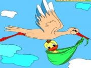Kids coloring: stork and baby